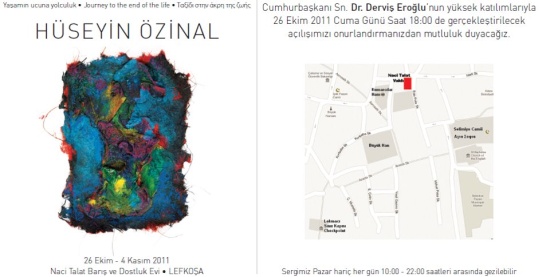 Hüseyin Özinal - painter and theatre designer - invites us to the opening of his exhibition at the Naci Talat House on Wednesday Oct 26 at 6 pm.