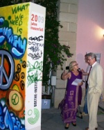 Many people had come to the farewell party at the Goethe-Zentrum, among them the leaders of both communities mayoress Eleni Mavrou and deputy mayor Celal Cin and the representative of the Goethe Institute in Berlin, Mrs Kerstin Raatz. German television Deutsche Welle had come from Berlin to Cyprus, the last station of the participating cities still with a dividing wall, to record the happening here.