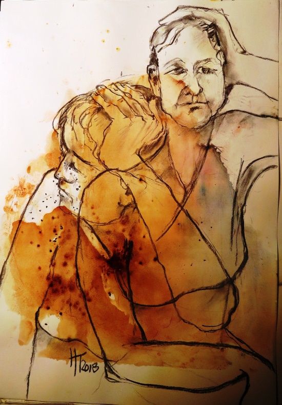 Three women II, mixed media on paper, 50x70cm, 2018cm