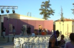 The stage set is coming alive with more and more details with the help of stage director Ayla Cağla Öztasçi; some extra props are delivered by members of the local theatre group, with Anna Landou being one of them, flower pots, mirrors and paintings for the wall. The lighting man Yaşan Kadiroğlu adjusts new spot lights and rehearses the effects; the actors make a last rehearsal, clearing things and getting used to the stage floor. Hundreds of white chairs are waiting for guests to come, the open “theatre house” in the centre of a village, in the village park, next door is the children’s play ground. Motorbikes racing around making a hell of a noise all afternoon but the traffic in the area will later be diverted.