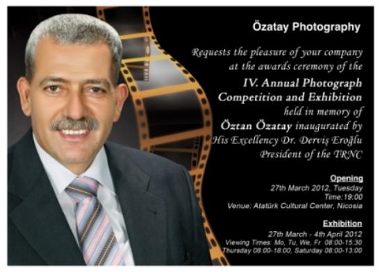 The exhibition was opened by his daughter Buket Özatay. The President of the TRNC Mr Derviş Eroğlu congratulated the winners with achievement awards for Lisani Otağ in the category colour; Hakan Kaşif in the black and white category; and Oğuz Köse in the underwater category. Özatay Special Awards were given to Devrim Yücel Besim (colour); Mustafa Evirgen (black and white ) and a Kemal Saracoğlu Special Award to Tevfik Camgöz.
