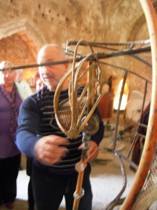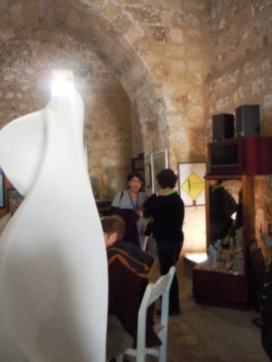 We later went by bus to visit Sezin’s newly established gallery and studio in the old pharmacy she has had for many years in a part of Famagusta most of our group have not seen before, and where she has her work displayed and where her own studio is. We were her first guests. She explained to our group what material she uses and her own philosophy which you will find explained in my review of her first solo exhibition. http://www.heiditrautmann.com/category.aspx?CID=1218846468