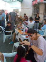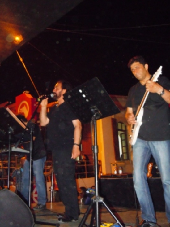 Right in the centre of Lefke village, along some roads, people had put up their stands to show and sell what their hands have produced. In the centre of it all was the space and stage where representatives of the Lefke Tourism Association were announcing the activities during the two days the village festival was running. From 10 o’clock on music groups of all genres were entertaining the guests who were coming and going, getting themselves some food from the stands and sitting down to chat with friends. As a last event on the programme a concert was announced we have especially come for, a concert with Feridun Işıman, an artist and friend. Sitting in a street corner café with other villagers and their kids we sipped some Turkish tea, nice and sweet, and waited for our friend’s performance while watching a concert of school kids; the girl singer made her voice sound like Tina Turner’s; young people from here look very well nourished, most probably they love the sweet walnuts themselves. And finally, Feridun Işıman and his band came onto stage and his wonderful voice filled the village of Lefke with old-time songs; he was singing for Lefke and his friends were thanking him. He has a warm and full tenor voice I know it from some CD’s, writing the songs himself. A multi-talent, singing and painting, and both he does with absolute passion.